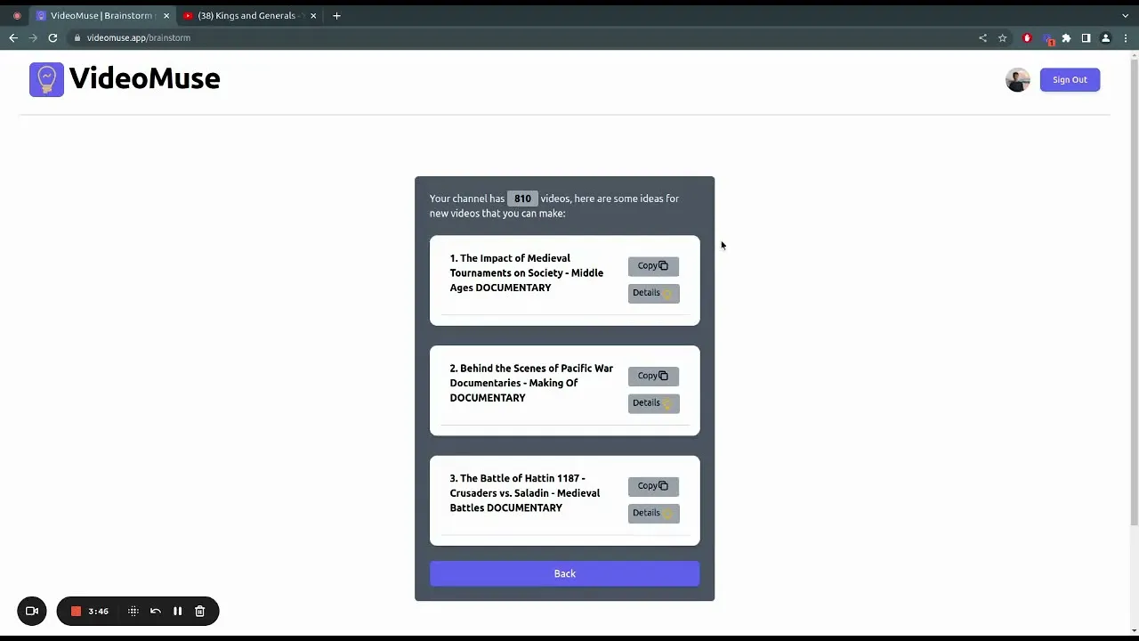 Introducing VideoMuse - Unleash Your YouTube Creativity with Data-Driven Video Ideas As content creators, we all encounter moments when our well of ideas runs dry. This website will help you brainstorm ideas based on your current uploads. You just give it the link to your channel (or any channel) and let the magic happen. For each idea, you can also generate some details - what should the video cover, hints about video structure, etc. There is no paid version yet, You will receive 5 credits to play with. If you need more credits to experiment with (within reasonable amounts), please do not hesitate to reach out and I will happily provide more.
