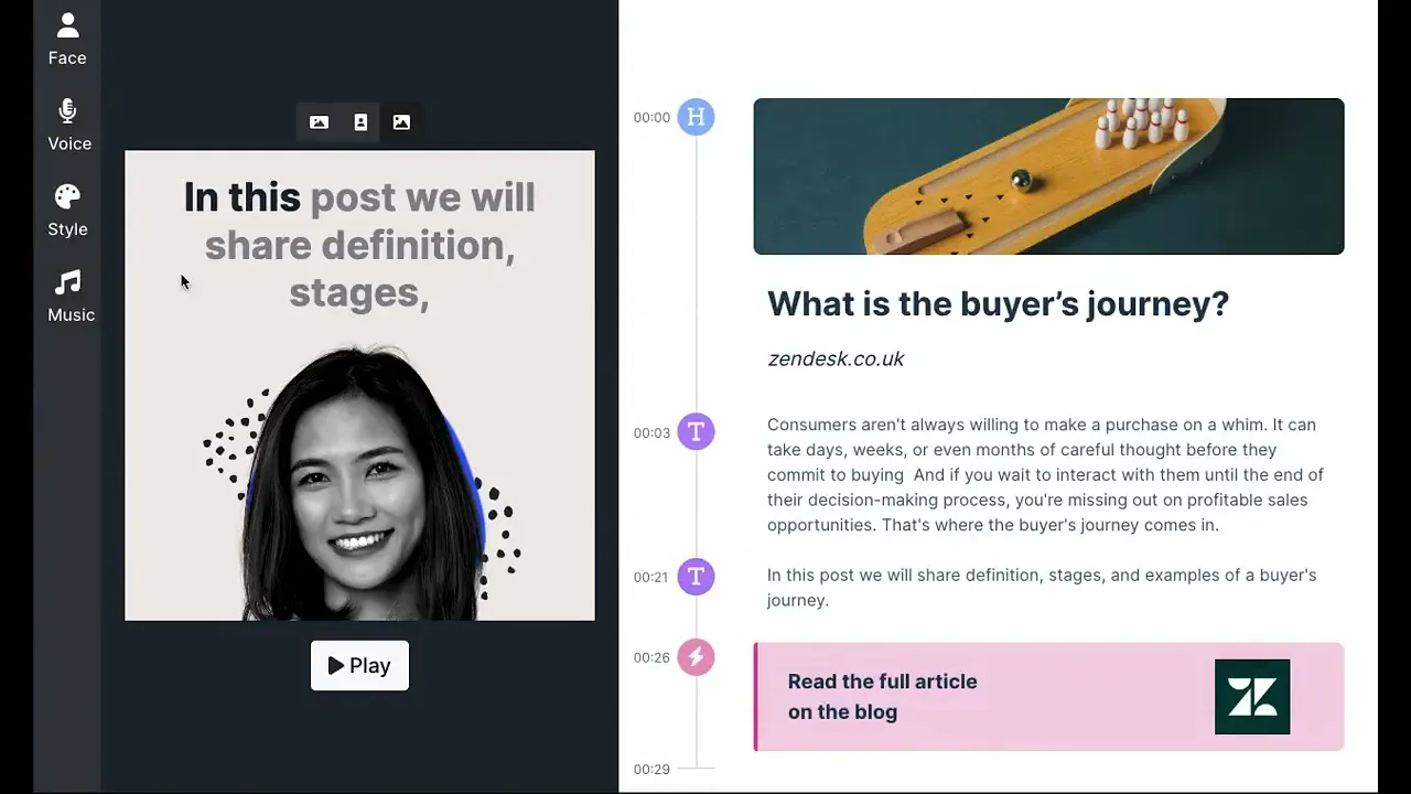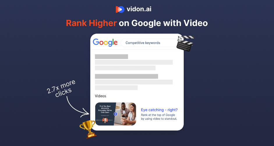 Vidon.ai automatically generates engaging shareable videos from your blog posts. Use video to standout on social, rank higher on Google, and share your content on video only platforms. Stand out on Social Share a teaser video to your new blog post on social media. Leads prefer consuming video and it is 3x more likely to get shared. Rank higher on Google Google loves video content! Increase your rankings and dwell times by embedding video into your blog posts. Borden your audience Share your content on video only platforms like TikTok and YouTube to speak to repurpose your content to a new audience.