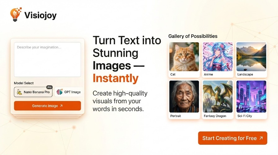 Visiojoy is the AI-powered platform for creators, marketers, and entrepreneurs. Turn your imagination into professional visuals instantly. Start free today.