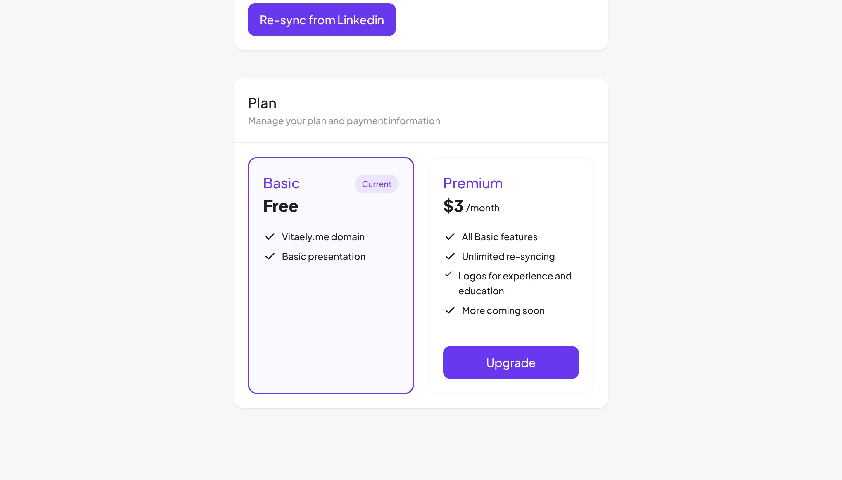 Vitaely.me allows you to create your own personal landing page in just two minutes by syncing data from your LinkedIn account. Simply paste your URL and Vitaely will do the rest.