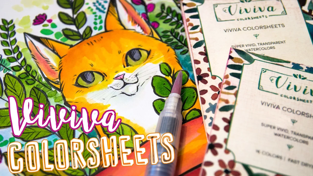 Viviva Colorsheets is the easiest and the most convenient watercolor set to paint on the go. It's a set of 16 transparent, beautiful watercolors. Each sheet is made of a super saturated layer of the color deposited on paper. They're a joy to pick up with a brush: simply pick and paint and you get this really intense, vibrant color.