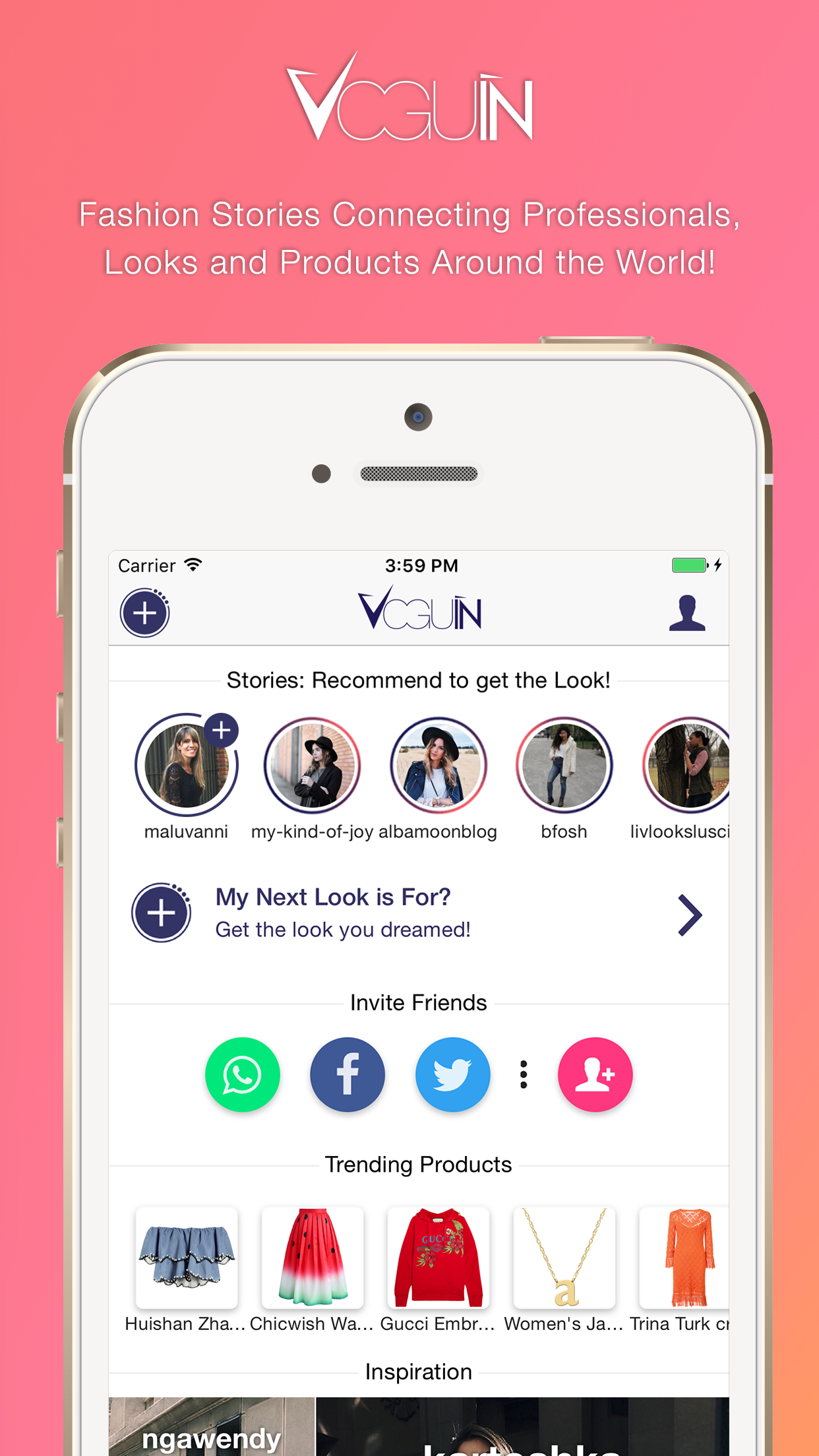 Voguin is the best way to find your look and get it from more than 100 million online stores. Create fashion stories with the help of influencers and friends, connecting looks, stores and pictures. Have fun and discover new styles! Use Voguin for: * Create stories with influencers and friends, posting with them and sharing comments. The stories are built together, to discover stores and looks around the world. * Discover millions of looks, from the most well known influencers and fashion bloggers. * Surf over more than 100 million fashion products, and the store to buy them.