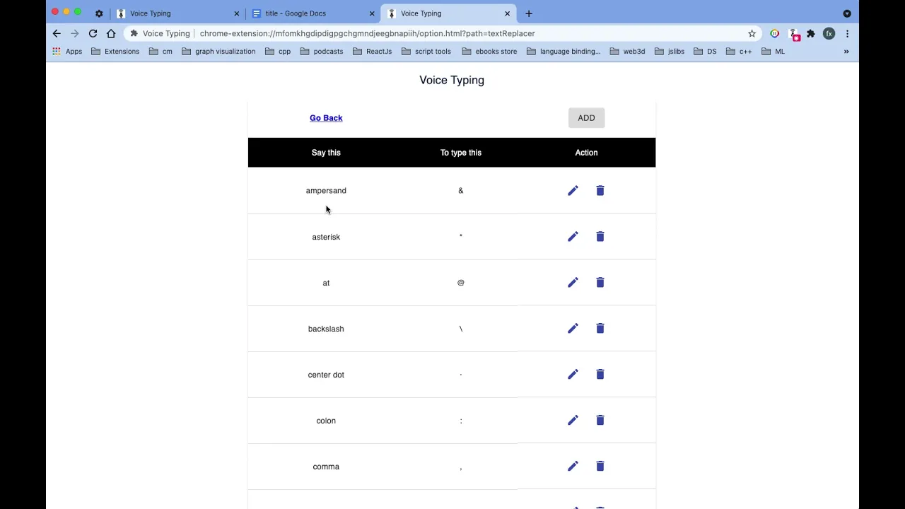 Use your voice to type on any website voice typing --- it makes it easy to type in the browser using voice-to-text. Whether it is writing emails in Gmail, answering assignments in Classroom, responding to customer tickets, replying to chats or learning pronunciations, Voice In Voice-To-Text capability lets you do them all using your voice. Works on google docs, google spreadsheets, fb messenger, instagram chats, Gmail or write blog posts on Wordpress or send messages in Slack and in any site that contains a text box. It can recognize a wide variety of languages. In order to work with this extension, simply open the addon's UI and then press on the big microphone icon to start converting your voice to text. Please note that, when the add-on is first started, it asks for microphone permission. Please accept the permission to start working with the add-on. Works on google docs, google spreadsheets, fb messenger, instagram chats, Gmail or write blog posts on Wordpress or send messages in Slack and in any site that contains a text box. Greatest feature of all is, that it works on all the websites. :) Support this project by joining my Patreon: https://www.patreon.com/fxnoob Some Features: ? Type with your voice on any website in more than 100 languages. ? TTS (Text to Speech) and copy on single click for recognized text. Comes with voices commands such as ? emoji - to search from more then 1800 emoji in your language to type a emoji with your voice. ? Commands such as undo, redo, newline, press enter etc. ? Word Expander Word Replacements . ? Free to use Note: Listed commands name changes according to selected language.