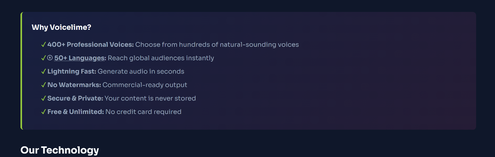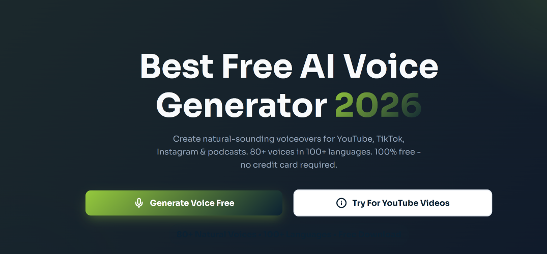 Best free AI voice generator 2026. Paste your script, choose from 400+ AI voices, and generate crystal-clear audio instantly. Whether you need a British accent for your corporate video, a Dutch voice for Dutch-market content, or a German narrator for training materials—VoiceLime delivers. ✓ 50+ Languages ✓ 400+ Voices ✓ MP3 Download ✓ Commercial Use Free