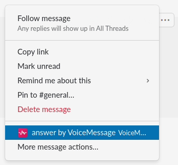 This is the easiest way to send audio messages directly on Slack. Simply use /vm slash command to start recording your audio. No external integration needed! When you're finished, your audio is uploaded to your Slack channel or direct message as an attachment. Contact developers at [email protected]