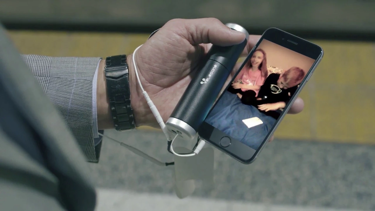 Volosano micSTICK™ is a discreet, portable device that transforms the user's iPhone into a powerful tool to combat the common aches and pains associated with frequent travel. Volosano works by utilizing small electrodes to send micro-pulse of low frequency micro-current to the damaged cells that cause pain. These micro-pulses penetrate the inflamed cells, restore the essential blood supply and remove cell waste. Volosano is powered via the user’s iPhone and operates by an App. This App allows the user to access pre-installed custom treatment programs, electrode placement guides by an interactive body diagram.