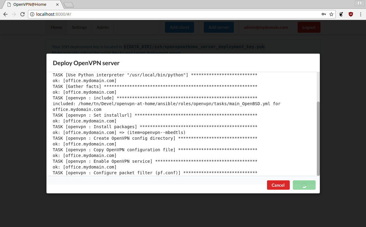 1-click, self-hosted OpenVPN deployment to your favorite VPS instance and clients management app. Created with Vue.js, Semantic UI and Django. And with love, of course.