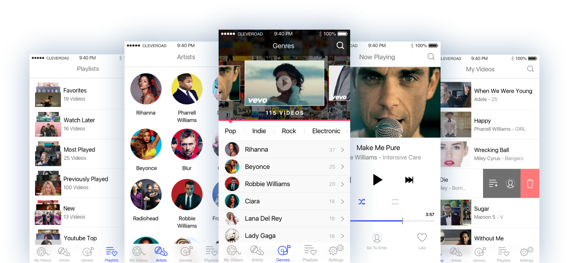 Watch videos of favorite artists right now! The app selects and offers the soundies by its own. Find the most popular video and discover the latest tracks