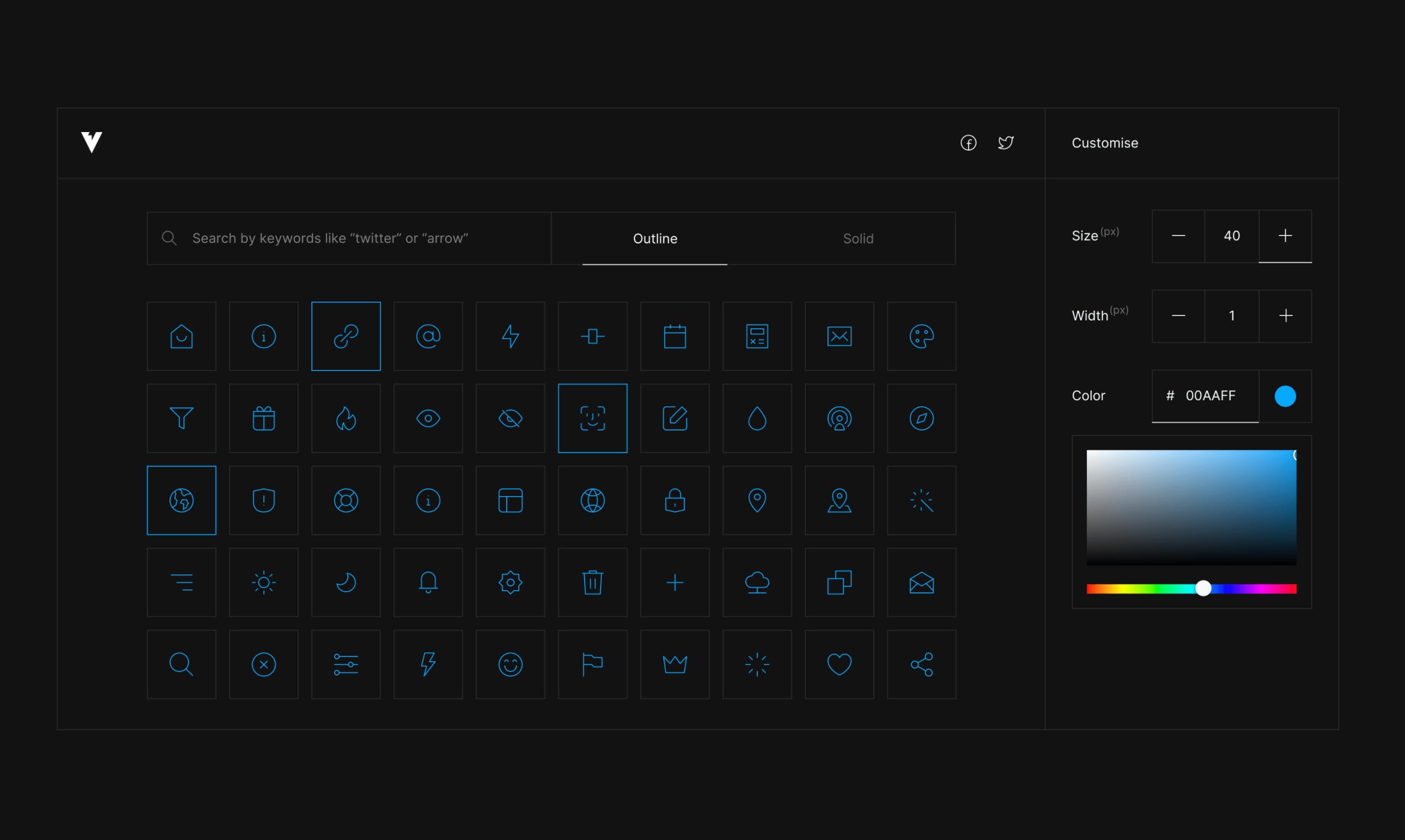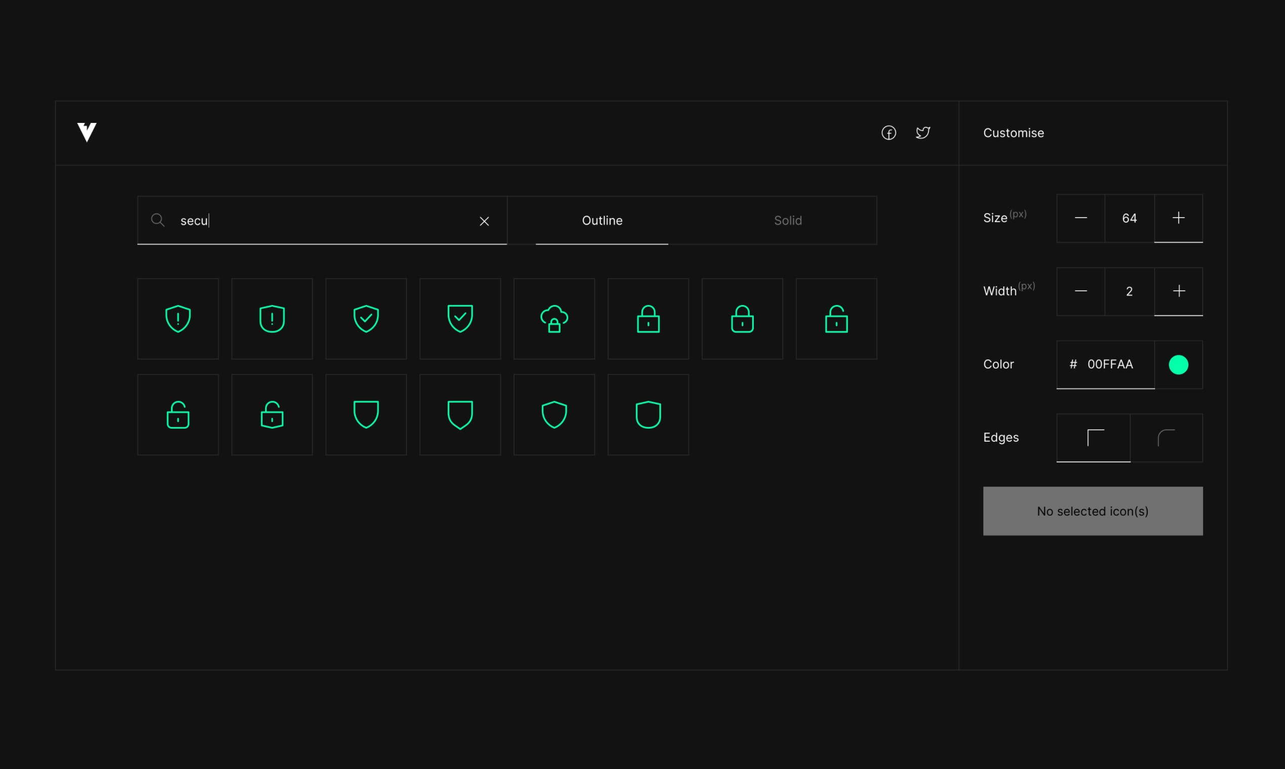 Hey guys, I've been making custom icons while designing web and app products over the past year and I thought it would be nice to create a library in a UX driven web app to help other makers save time. <a href="https://icons.vzy.co">Vzy icons app</a> is designed in a minimal interface that allows you to easily customize edges, width, and colors for all the icons at once. Other cool features are; - Light &amp; Dark Mode - Ajax Live Search - Works offline - Icon variations - Growing pack You can download 200+ free icons on Vzy or get full access at a one-time fee of $59. Vzy ~ Very Easy