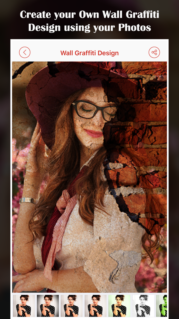 Create wonderful graffiti wall designs your pictures with the help of Wall "Graffiti Designs -Make Wall Effect" It provides many HD wall graffiti designs for your images that can help you to make it unforgettable picture story. This is an easy way to create graffiti artwork using your photos with the suitable wall backgrounds.