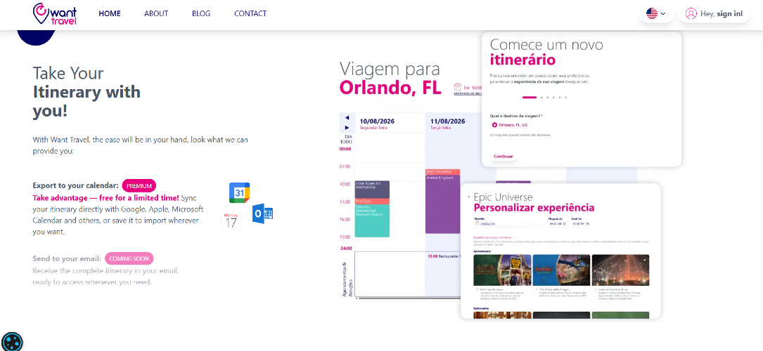 Want.travel makes planning trips to Orlando and Anaheim effortless for families and theme park enthusiasts. Replace messy spreadsheets with a clean, structured itinerary that exports directly to your favorite calendar app. Built by a 15+ year veteran developer, focusing entirely on simplicity, flexibility, and saving you time.