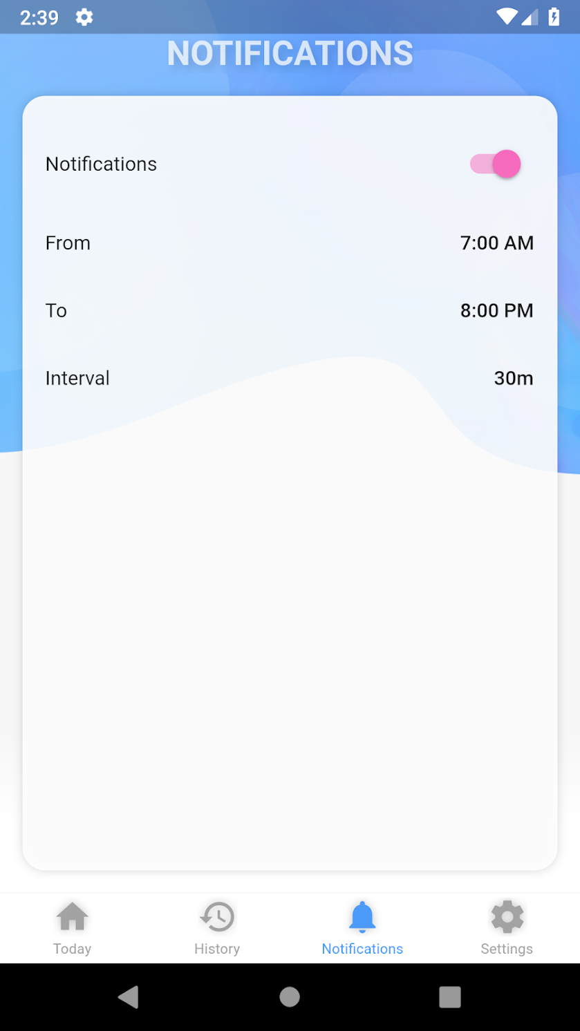 We may not think of it, but water can have a large impact on our overall and day-to-day health. As I’m sure you may know, it is important to hydrate regularly in order to preserve adequate mental and physical functions. Many of us do not pay attention to how much water we are drinking and how this can be affecting how we feel and what is happening inside of our bodies. Most of us ' do' drink water but... do you drink enough? Do you want to make sure you are doing your best to stay healthy? It is time to start tracking how much water you have drunk every day. Watermaniac is an app that will help you track the amount of water you drink. Features: - Set a daily goal of water - A history of all drink you took (and logged) - Customizable notifications to remind you about drinking It is simple, lightweight and built with Google Flutter. Only core functionalities.