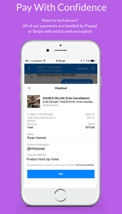Waylo allows you to track any hotel or multiple hotels in a city and get notified when price drops or if we negotiate an unpublished deal for you. Users have saved upto 75% off the listed online price with Waylo.