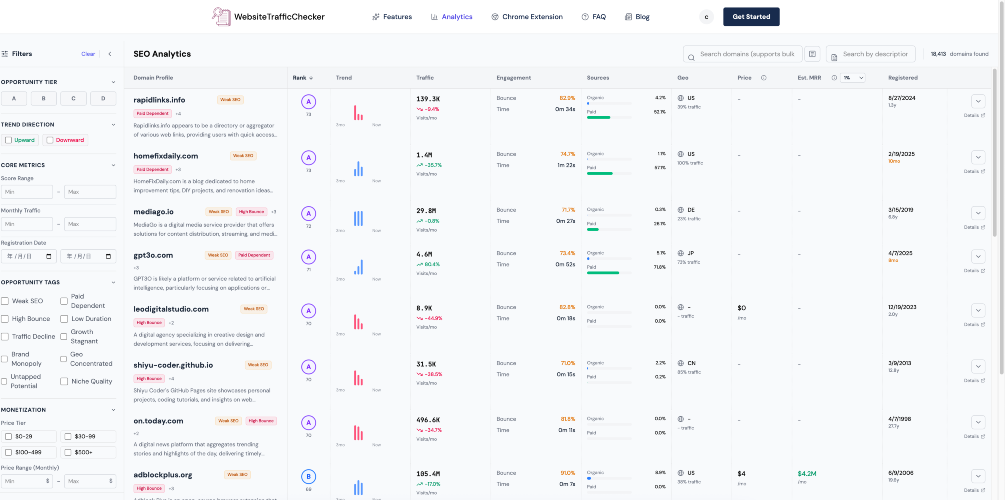 Free tool to analyze any website's traffic data instantly, including visitor statistics, sources, and rankings.