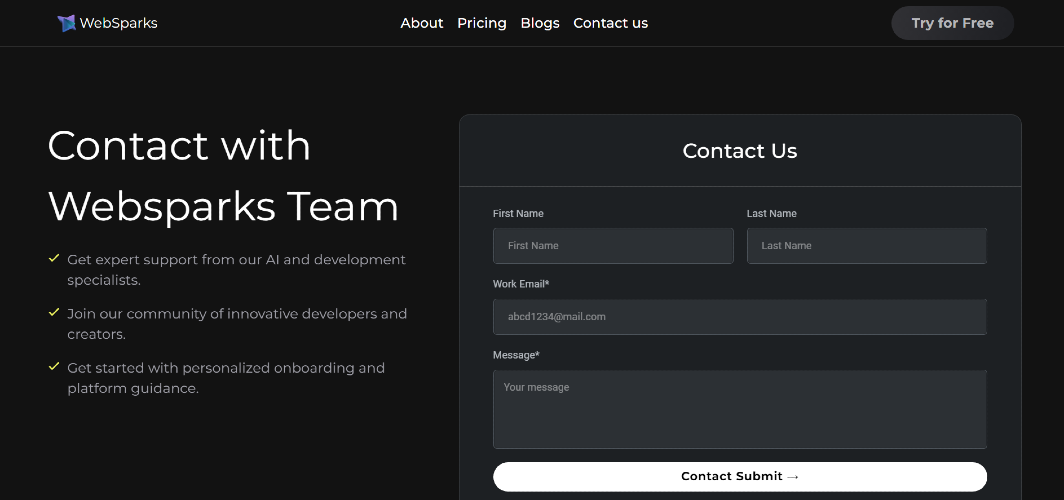 Turn ideas into web apps, faster than ever with AI. Build websites & apps faster with WebSparks, the AI software engineer. Empowering developers & non-coders to create production-ready applications quickly. WebSparks is an AI-powered software engineer agent that helps you build production-ready applications significantly faster. It transforms your text, images, and sketches into complete full-stack applications with responsive frontends, robust backends, and optimized databases. This allows developers, designers, and visionaries to bring their ideas to life quickly and efficiently.
