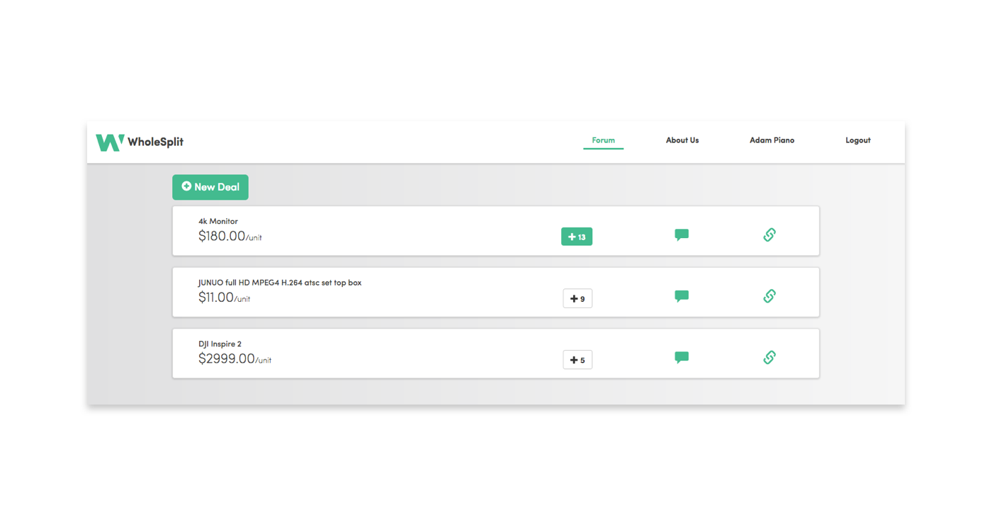 We realize big brands are having less power nowadays in terms of their building and maintaining that further connection with end users and consumers. This notation gave us the idea to build WholeSplit, a crowdfunding wholesale product marketplace. Our platform provides rock-bottom prices for consumers and provides direct consumer pipeline for manufacturers.