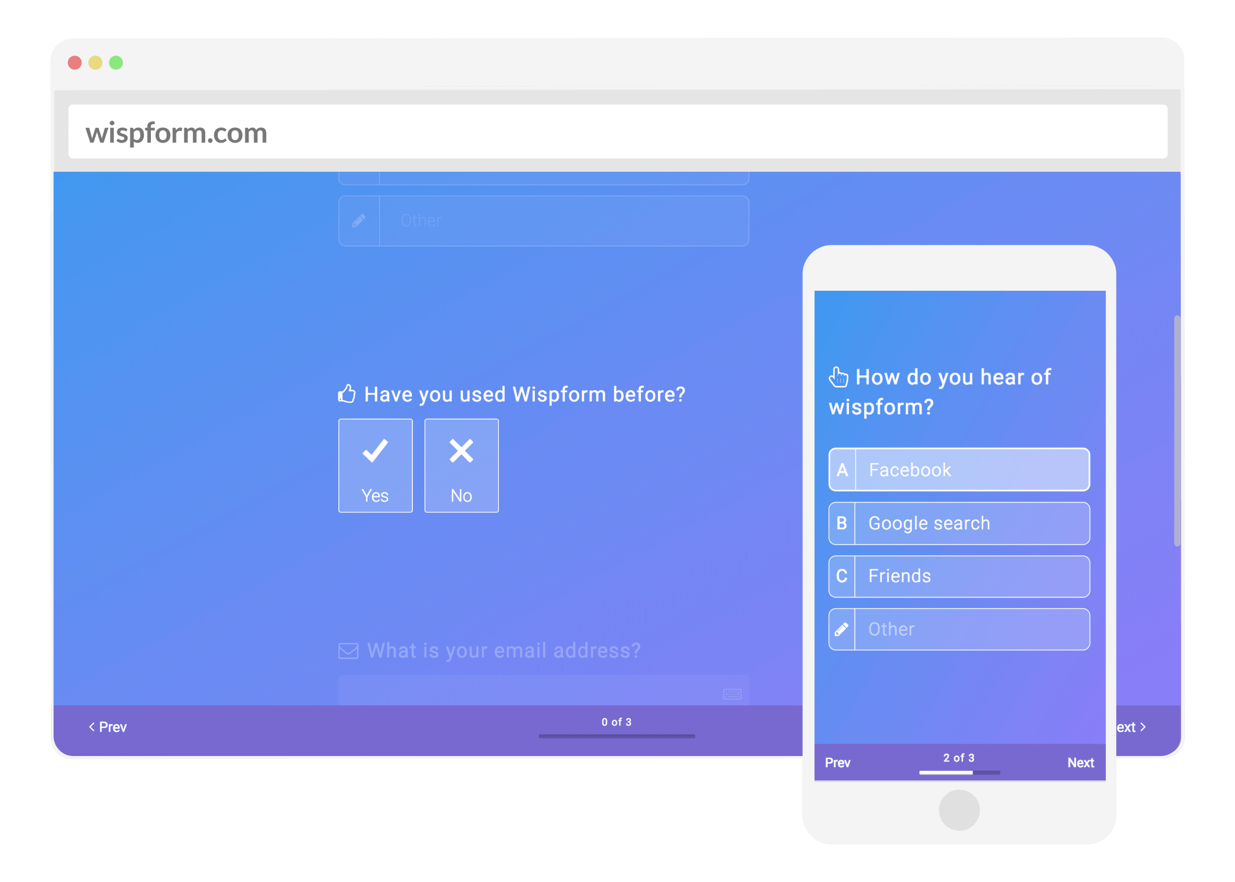 Wispform offers an easy form builder for creating beautiful online forms and surveys. It is the perfect solution for creating application forms, contact forms, registration forms and interactive surveys. Compared to traditional forms, Wispform has a conversational style that will wow your audience into giving a great response. Wispform offers a generous free tier as well as a $10/month plan for advanced features like logic jump, custom thank you pages, 3rd party integrations and image upload. We hope to upend the industry by providing full capabilities at much more reasonable prices. Say goodbye to spending $30+ every month just to maintain a simple form.
