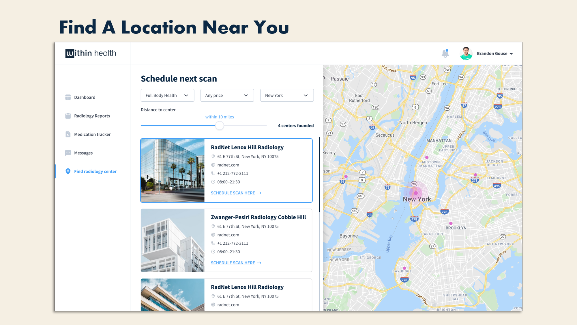 Within Health simplifies the radiology journey for patients, referring providers, and radiology groups. The product includes telehealth functionality, scheduling integrations with imaging centers, patient and provider portals, and analytics and engagement tools for radiology groups. The SaaS solution brings imaging centers a digital presence that meets evolving consumer expectations and gives them access to the latest engagement tools and analytics to keep this next generation of patients engaged.