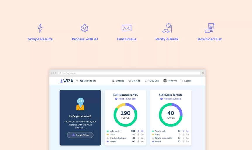 Wiza allows you to turn any LinkedIn Sales Navigator search into a clean list of verified emails, ready for outreach.