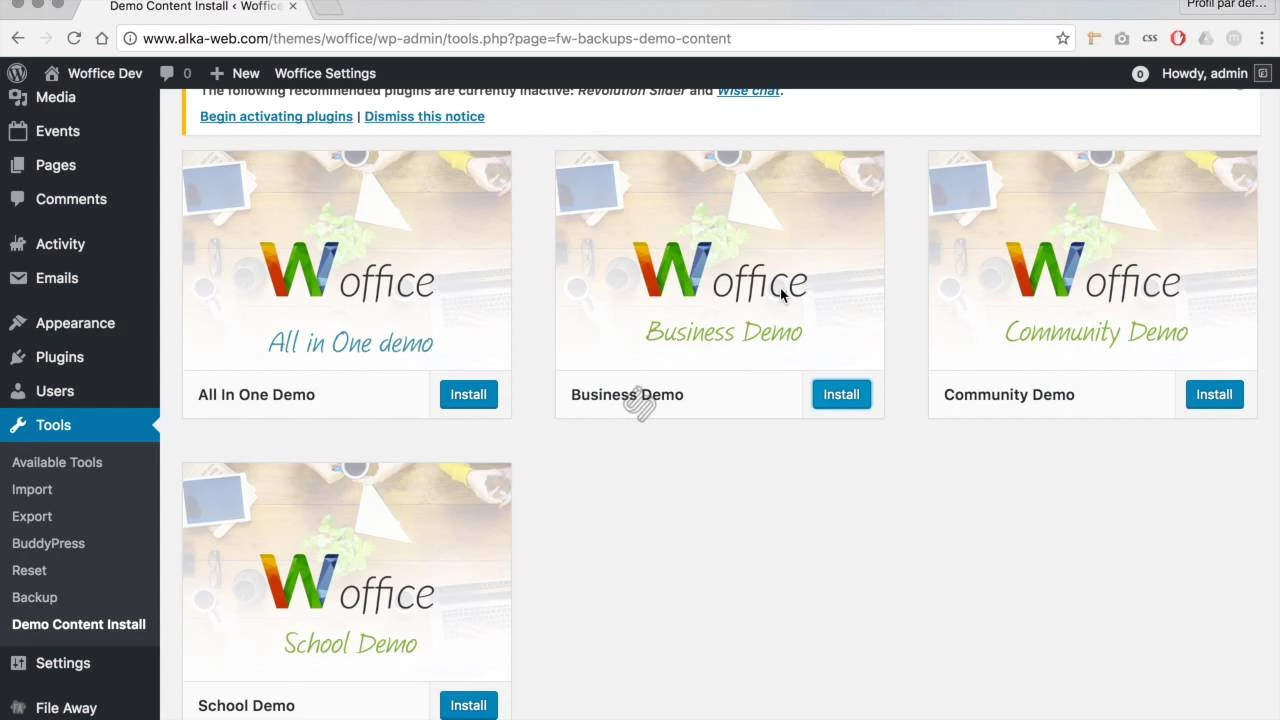 Woffice is a Wordpress Theme fully adaptable to a wide range of applications including any Business & Government Intranet/Extranet, School network, Community network or Organization looking for a private network. Need help to set it up on your server : contact us https://alka-web.com/contact/