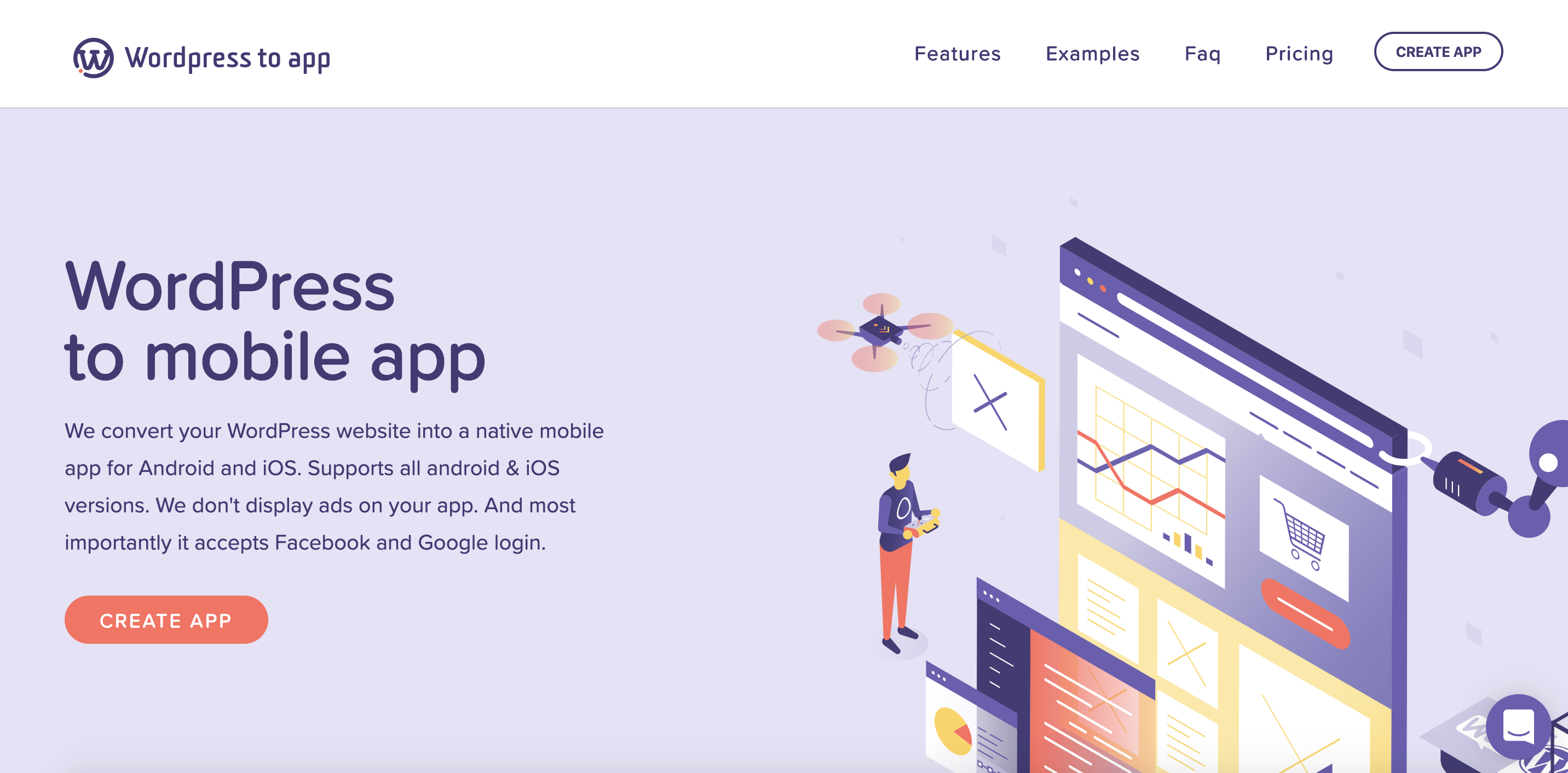 We convert your WordPress website into a native mobile app for Android and iOS. Supports all android & iOS versions. We don't display ads on your app. And most importantly it accepts Facebook and Google login.