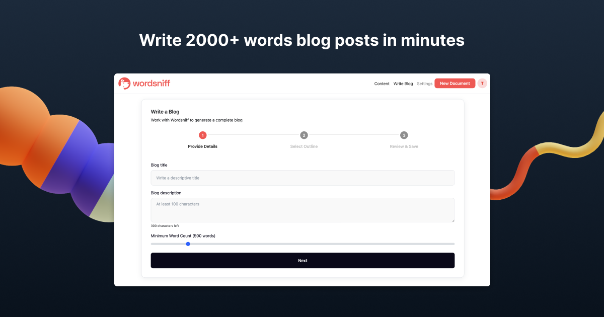 Wordsniff is an AI copywriter that uses GPT-3 to generate natural, human-like content for websites, blogs, ads and other media. Wordsniff aims at helping businesses create content that is engaging, shareable and SEO-friendly. Unlike other copywriters, Wordsniff allows you to get your articles proofread before you can publish them. Speed up your content pipeline by getting 80% written by Wordsniff and 20% edited by humans. The platform allows you to generate 300-2000 words blog articles in seconds. All articles are keyword-rich and plagiarism-free. The AI copywriter platform helps you generate content faster and more effectively. Wordsniff is the first copywriter that combines the power of AI with human proofreaders. You can get your articles written by Wordsniff and then use our human proofreaders to edit and improve your content. You will never have to face any writer's block because Wordsniff 'Write More' feature lets you generate more content in seconds. You don't even have to worry about keywords anymore. Wordsniff will naturally embed your target keywords in your articles. With Wordsniff, you can even create articles in different languages. It has an internal dictionary of over 1 million words across 20+ languages. You can select your target language and Wordsniff will create your content in that language.