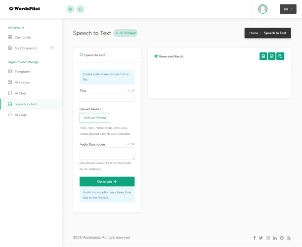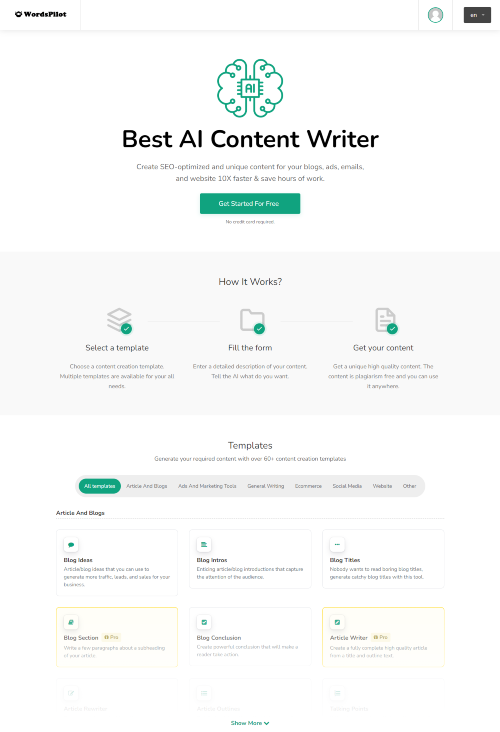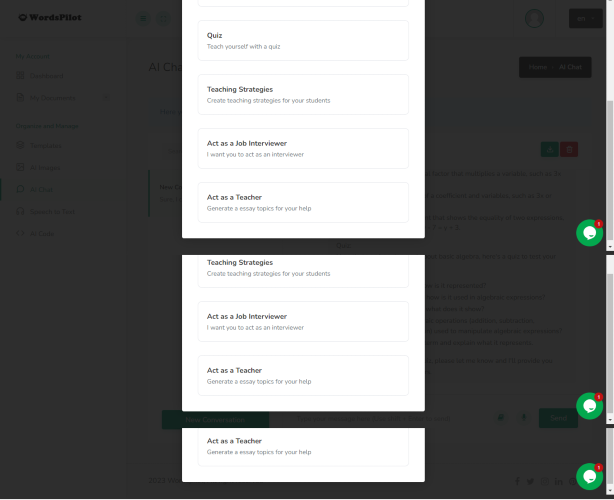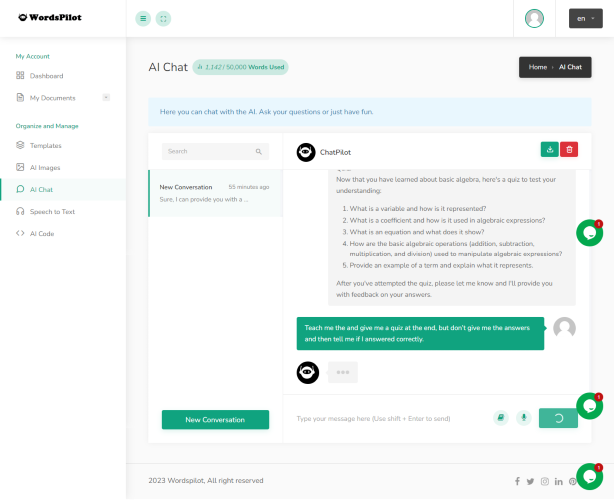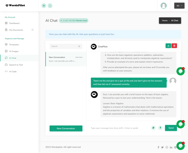 WordsPilot is an innovative AI company that specializes in AI content creation, ChatGPT, different types of chatbots, image generators, code generators, and speech-to-text technologies. Our AI content creation technology is designed to revolutionize the way businesses create content. Our algorithms create unique, high-quality content, including web copy, blog posts, and product descriptions, within minutes without human intervention. Our ChatGPT technology is built to replicate human conversations, making it personalized and engaging. It can be integrated into virtual assistants, messaging platforms, and chatbots to simplify the user experience. Our chatbot solutions are customized to individual business needs, including customer service, HR, gaming, banking, and e-commerce, among others. Our image generator, powered by AI capabilities, can transform stock images into personalized and unique graphics that align with the business's branding and messaging. Additionally, our code generator simplifies programming processes, reducing development time and costs for businesses. Our speech-to-text technology makes verbal communication with devices more accessible and convenient for users. With its cutting-edge capabilities, users can easily transcribe or translate their recorded voice. At WordsPilot, we understand the importance of innovation in business, and that is why we strive to provide AI solutions designed to improve business performance and customer experience. Our team of experts is passionate and committed to delivering high-quality, customizable, and scalable AI solutions for businesses across various industries. In summary, WordsPilot is an innovative and revolutionary AI company that is transforming the face of content creation, customer engagement, programming, and speech interaction with technology.