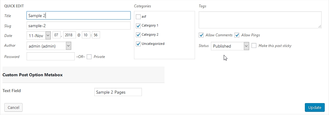 This framework lets you define custom meta boxes & custom fields via arrays and handles everything behind the scene automatically. It has a wide range of field types & settings. This supports most WP Features. Feel Free To Join our Slack Community : https://slack.wponion.com