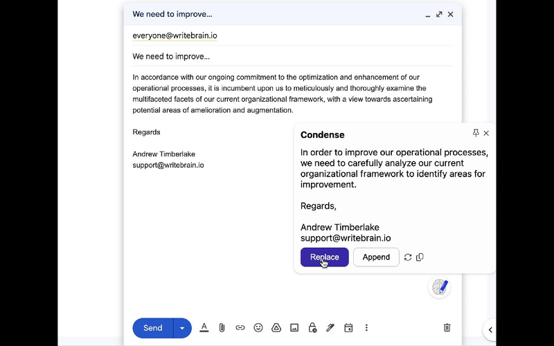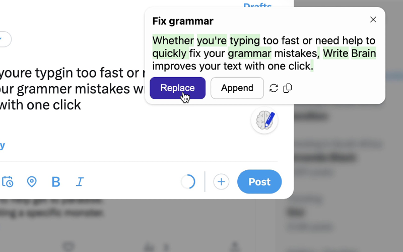 Automagic creative writing assistance wherever you write on the web. Write Brain will help you with grammar and other writing improvements whether you are posting on social media, chatting in forums, writing emails, or filling in forms. A simple menu of writing improvement commands help you to improve your writing everywhere: โ๏ธ Fix grammar ๐ Improve your writing โ๏ธ Make your writing more compact and less verbose ๐๏ธ Change your tone to fit the context ๐ Translate text to or from your home language ๐ Add emoji ๐ฏ and more