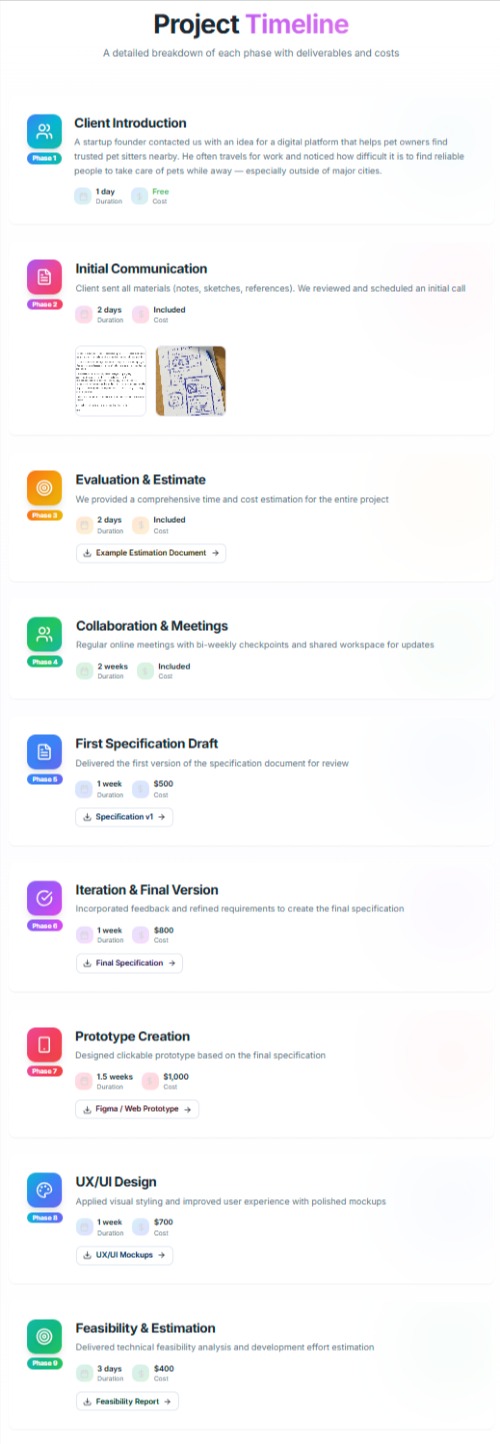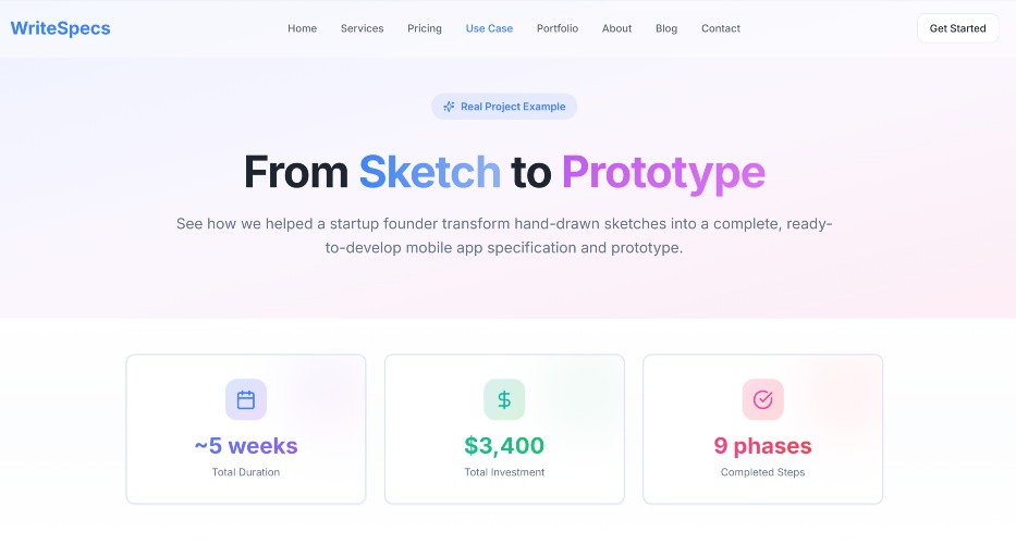 WriteSpecs helps founders and teams transform early ideas into clear, actionable documentation and interactive prototypes that developers can implement with minimal back-and-forth. We combine AI-assisted tools with experienced business analysts, designers, and technical reviewers to accelerate discovery, define requirements, and deliver production-ready specifications. Typical deliverables include BRDs, user stories/use cases, process diagrams, functional specification documents (FSDs), wireframes, data model drafts, and clickable prototypes for web, mobile (iOS/Android), or desktop. With 15+ years of experience, 300+ projects delivered, and clients across 20+ countries, WriteSpecs bridges the gap between business vision and development reality - reducing rework, speeding delivery, and ensuring perfect stakeholder alignment.