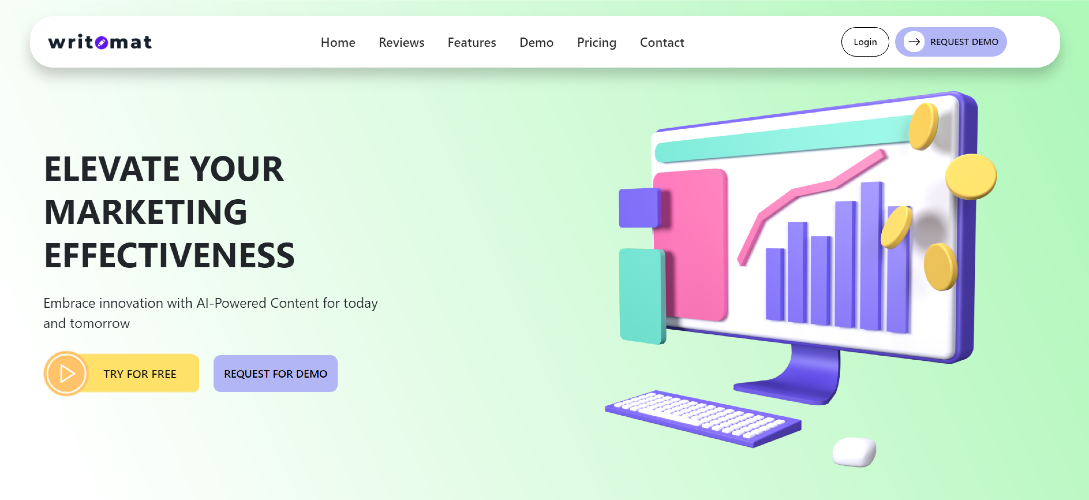 Writomat is an autonomous social media management and strategic marketing automation tool, which analyzes your website and social media to create a data-driven strategy. It would then automatically generate creatives, schedule posts, multi-channel campaigns and even analyze their performance to generate leads. Writomat supports businesses in maintaining consistency across their digital marketing endeavors, resulting in enhanced return on investment (ROI) at a reduced cost. This makes Writomat a valuable asset, whether you're a solopreneur or a full-fledged marketing team.
