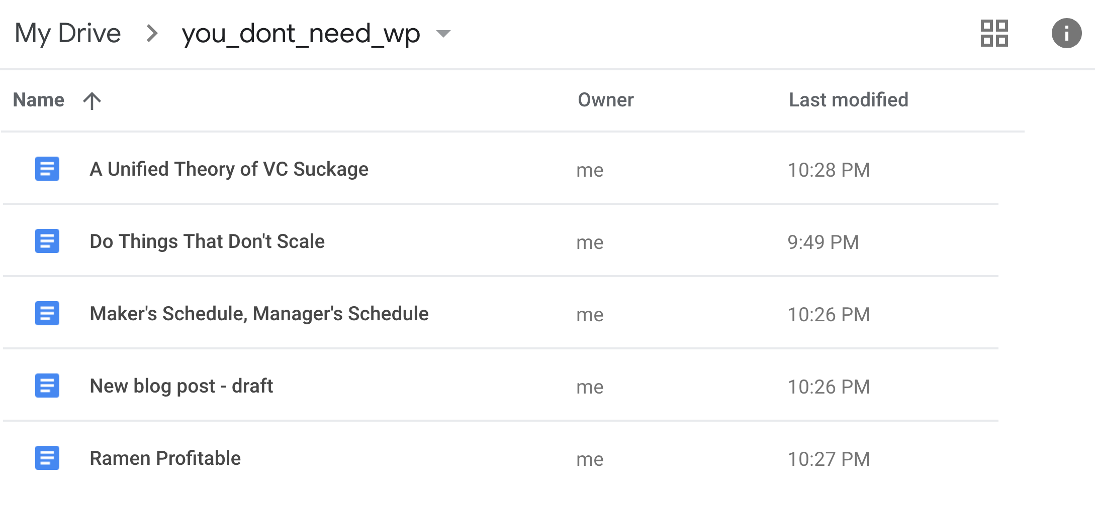 -The Simplest CMS Integrate directly with Google Drive. Work from your phone or computer -Hosted for you We handle hosting, all you need is a Google Drive account! -Open Source Our platform is open source! Feel free to contribute and/or host it yourself! -Free We are free to use!
