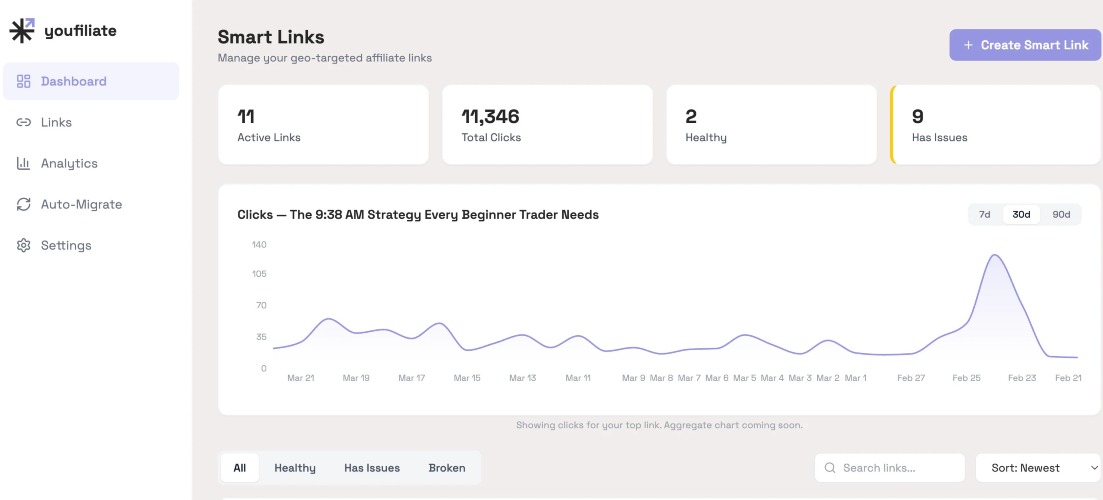 Youfiliate: Smart affiliate links for YouTube creators. Turn any affiliate link into a geo-targeted, app-opening smart link. A flat-rate Geniuslink alternative with free options to start. Boost your affiliate revenue today