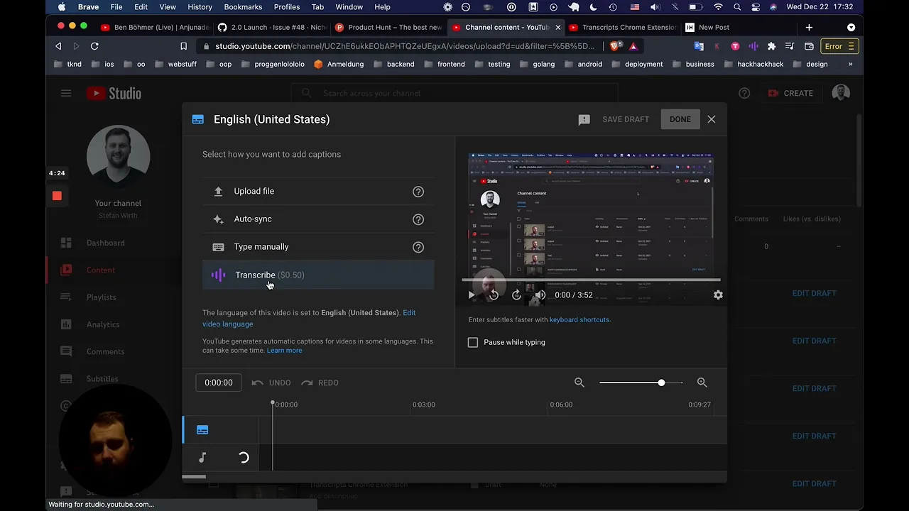 YouTube Transcripts lets you transcribe your YouTube videos with one click, without leaving YouTube Studio.
