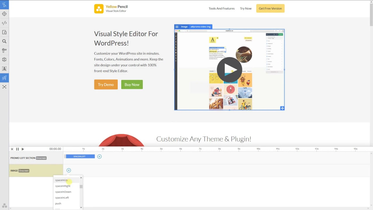 The plugin allows you customize any page and theme. Click on an element and start visual customization. Adjust colors, fonts, sizes, positions and a lot more. Take control of your website with more than 50 styles properties. Yellow Pencil provides everything that you need for customizing your site design. The plugin comes with advanced features like visual resizing, drag & drop, measuring tool as well as a ton resources that background patterns, sweet fonts, and trend color palettes also it has an advanced responsive tool which allows you customize your site for any screen size. Customize your WordPress site in minutes. Fonts, Colors, Animations and more. Keep the site design under your control with Front-End Style Editor.