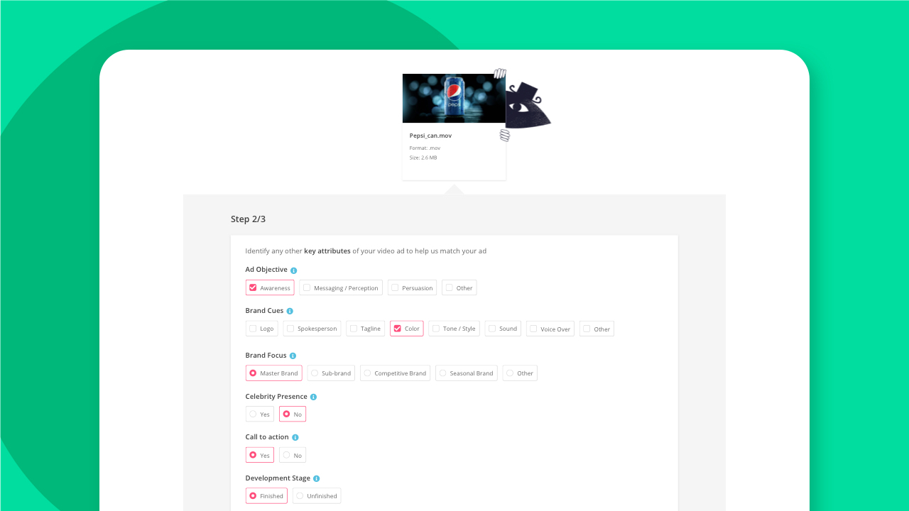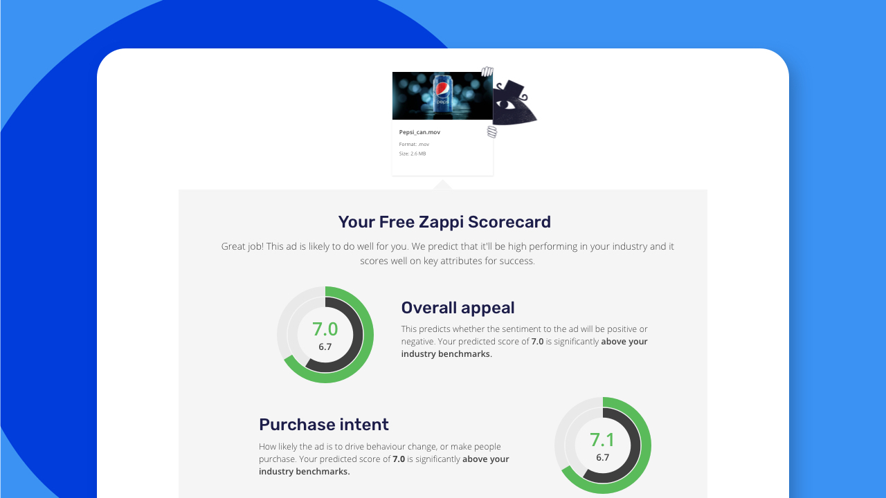 Upload your video ad and get a free performance prediction - See your ad’s areas of strength and weakness - Compare your ad to benchmarks from your industry - Or just gut-check your ad before going live Trained on hundreds of millions of dollars of ad spend.