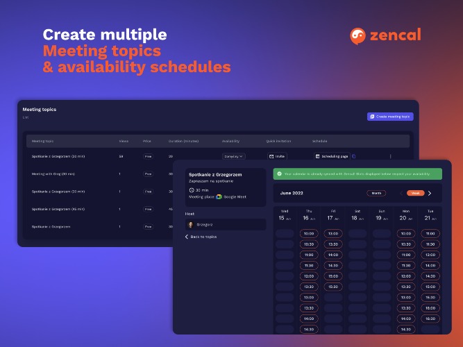 Zencal is like Calendly, but free and with better teamwork. It allows you to add multiple teams and sync everyone’s calendars. It's easy to sell meetings as a subscription and multiple meetings in a batch. You can also set up multiple availability schedules and apply to different meeting types and attendees can quickly overlay Google Calendar. Did we mention it's free?