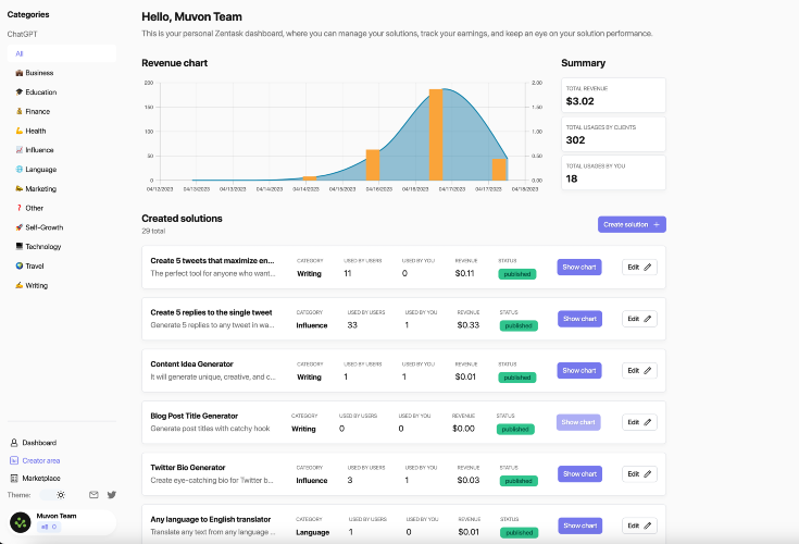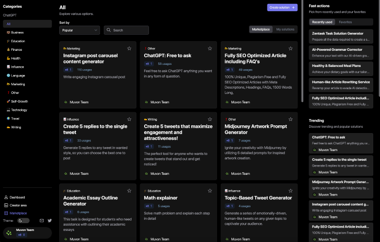 Introducing our AI marketplace! Create prompts with full security and earn commission with every use. It's like Spotify for prompts, but for engineers. Join our beta to create your own prompt library. We support GPT4 and planning to integrate midjourney.