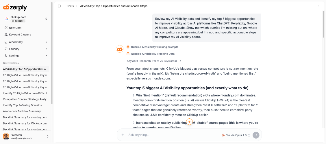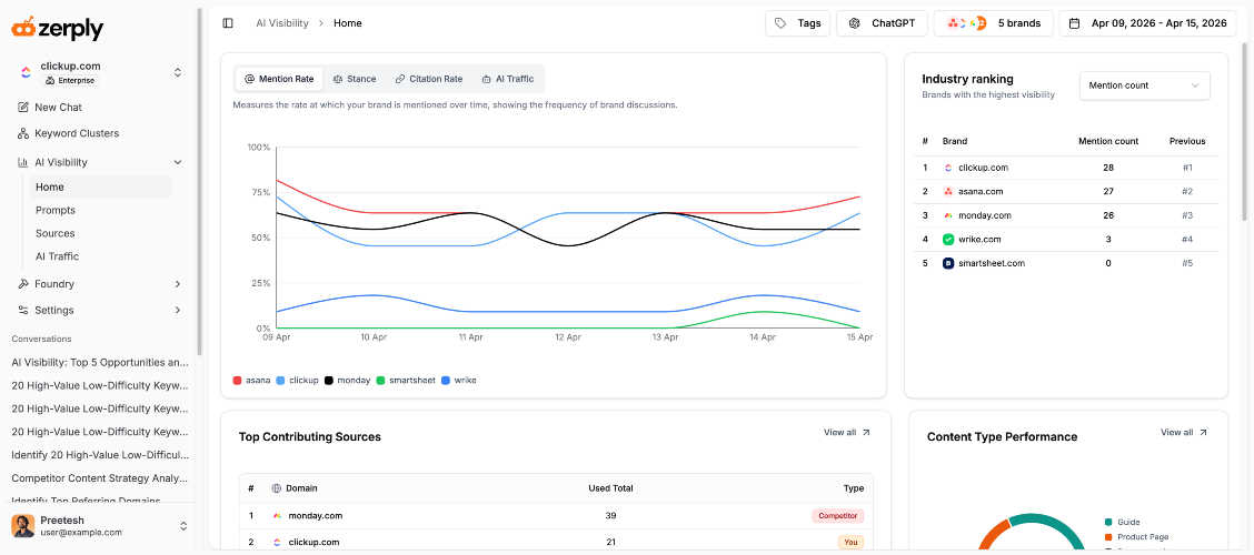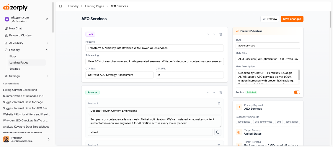 Zerply is an agentic AI SEO platform that automates your entire content and search strategy, from tracking how your brand appears in AI models to writing and publishing high-quality content while you sleep. The average marketing team spends 47+ hours weekly on manual SEO/GEO work. Zerply reverses that with five integrated pillars: AI Agents: Specialized autonomous workers that monitor your site around the clock, find content gaps, build your editorial calendar, write human-quality articles, and publish directly to WordPress. No constant oversight needed. AI Visibility Tracking: See exactly how your brand appears across ChatGPT, Perplexity, Claude, and Google AI Overviews. Zerply calculates your Share of Voice, tracks sentiment scores, identifies citation sources, and alerts you to competitor gaps so you can act before losing ground. AI Traffic Analytics: Understand which AI bots are crawling your site, which pages they focus on, and whether visits are for training, search, or live answer generation. No tags or scripts to install. Works at the infrastructure layer. SEO Chat: Connect Google Search Console and ask any SEO question in plain English. Get data-backed answers with charts, keyword tables, and traffic analysis. Powered by real GSC data and Google Ads Keyword Planner, not guesswork. Foundry: Publish blogs and landing pages directly under your own domain as a subpath (yourdomain.com/resources), not a subdomain. Every page ships with schema markup, auto sitemaps, edge-fast global delivery, and perfect Lighthouse scores. Works with WordPress, Webflow, Shopify, and any custom stack. Zerply is built for marketers, SEO professionals, and agencies who want a full marketing department in one tab, not five disconnected tools. Multi-brand workspace switching is available for agencies on the Enterprise plan. Free plan available with no credit card required. Paid plans start at $12 per month with a 7-day free trial.