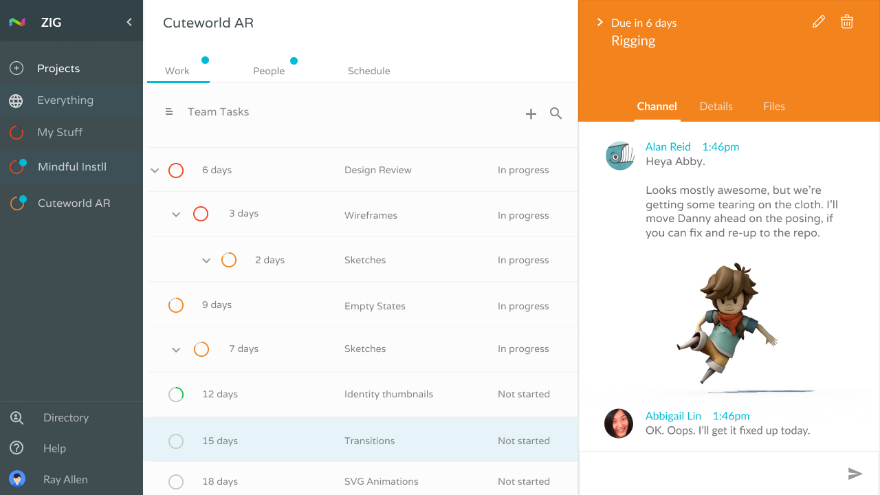Creative projects have crews that include coworkers, external partners, subcontractors and clients. Zig gets everyone on the same page and focused on the same goal. Zig allows users to create a personal roster of the people they work with. They can invite their connections to any project, assembling on demand teams and managing multiple projects. Small shops can team up with other specialists to take on larger jobs. Agency producers can bring in special talents and coordinate with external vendors. Freelancers can grow their network and fill out their work year. Zig is a collaboration platform designed to work the way creative projects work.