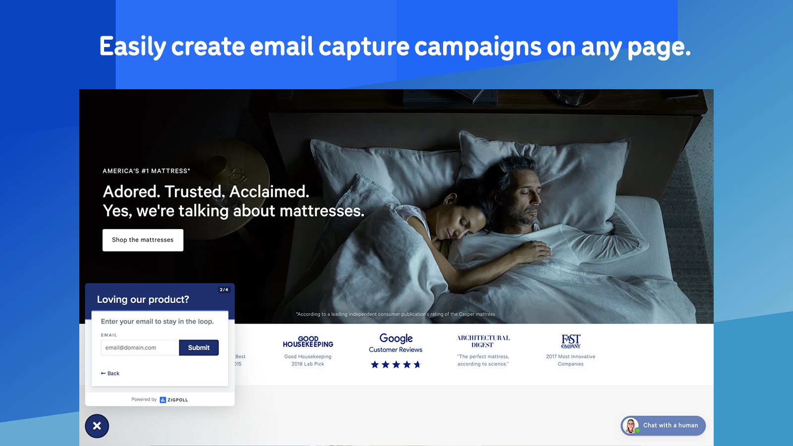 Zigpoll is an embeddable polling widget that can live on any page within your website. It lets you easily collect feedback, emails, and sentiment from your visitors so you can make better business decisions.