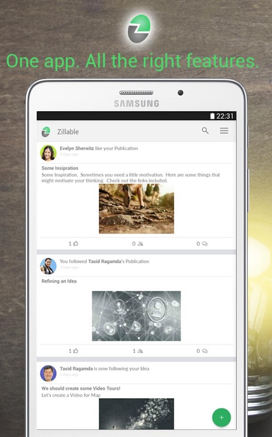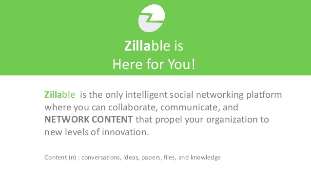 Zillable™ is the world’s first team collaboration network for innovation-on-demand, where teams can make work and innovation happen. As a secured communication and collaboration hub, Zillable provides teams with an intelligent network that bridges minds and workflows. With Zillable, you can chat, get stuff done and remember everything. For more information, please visit www.Zillable.com. Try it for Free.
