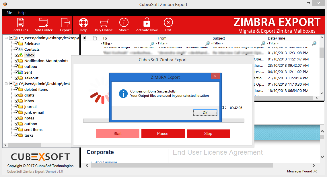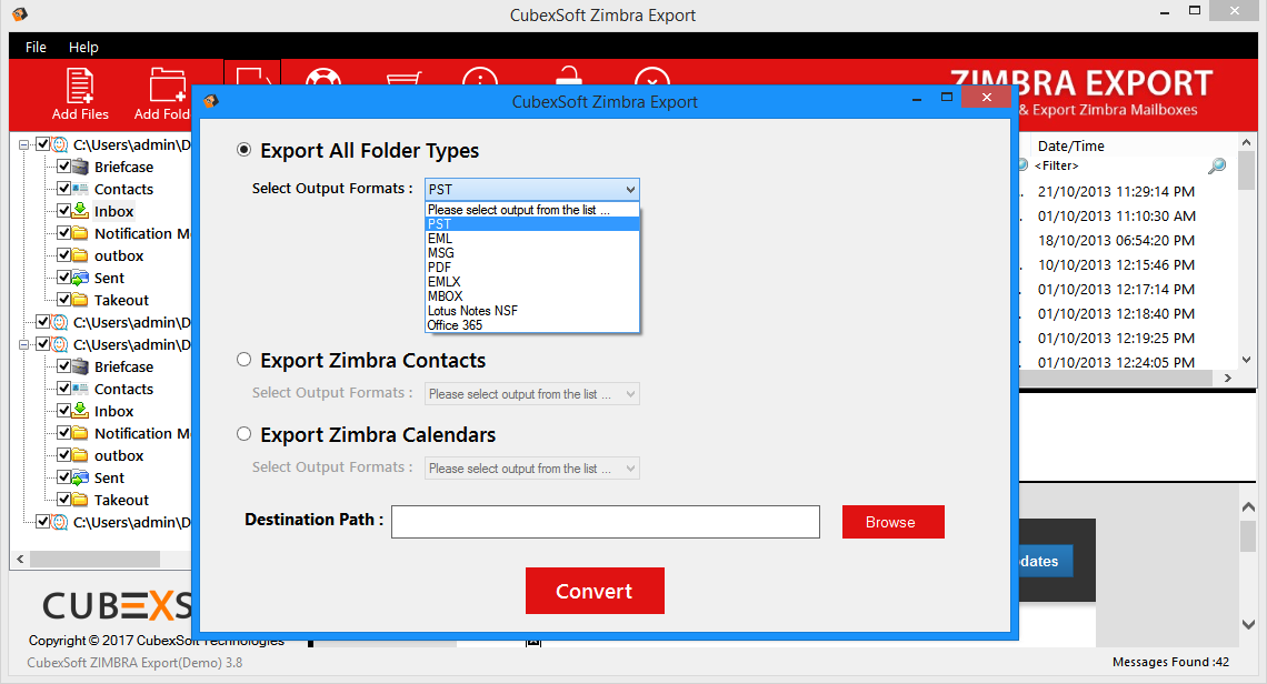 Zimbra to PST Converter is a complete and remarkable utility to convert multiple Zimbra mails to Outlook 2007, 2010, 2013, 2016. Supports instant bulk migration of Zimbra emails to PST with attachments including contacts, briefcase, journals, tasks, notes and more in a single time. The software carries out accurate and alteration-free conversion of Zimbra mailbox into Outlook. Add File and Add Folder are the two main options present in the application. Add File allow to load few crucial files for conversion whereas Add Folder facilitates to load complete TGZ folder and enables to convert all the included data into Outlook PST format. No Zimbra installation is needed to carry out the required process. In-built Preview feature is one of the main software feature which has been added for precise email conversion. Try free Zimbra to PST Converter software download version on all editions of Windows OS for evaluation and analysis.