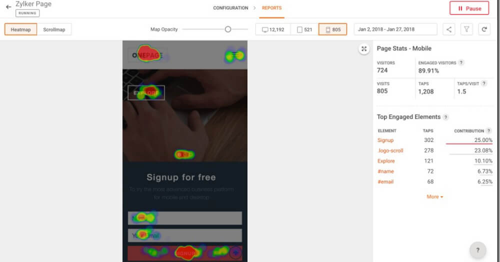 The all-in-one CRO software which supports A/B testing, Heatmaps, and Funnel Analysis. Coupled with Zoho’s other sales and marketing products, PageSense empowers your business to make informed decisions about website changes that boost conversions. Zoho PageSense helps you understand how your visitors interact with your website, what they click, and how far down they scroll. You can use this data to change website elements that aren’t performing as you’d like and run A/B tests to find the change that generates the highest conversions. -A/B Tests -Heatmaps -Funnel Analysis, etc.