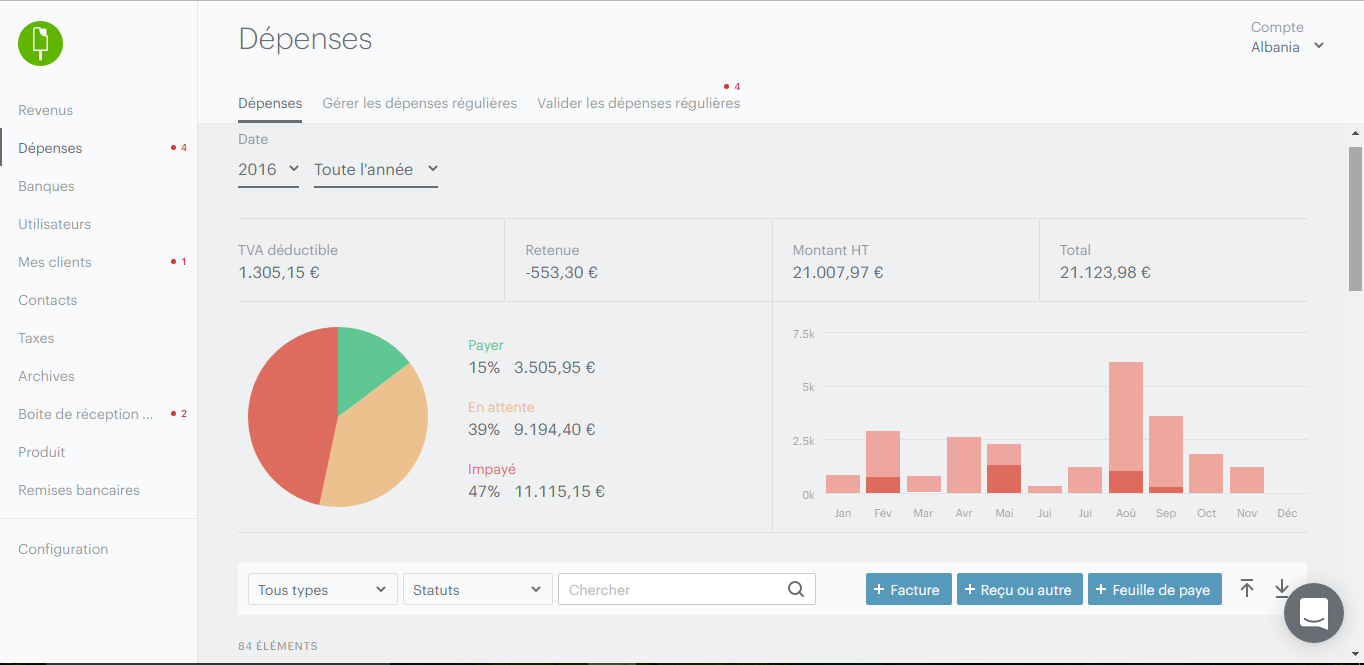 Online accounting software for small business Run easily your business and get paid faster Create professional invoices Manage your cashflow by scheduling your payment. Online accounting software for small business! Incomes and expenses in the same dashboard in one click. Create professional invoices, bills and orders form in few seconds. Bank reconciliation, connect you bank account and match your invoices. Log from you Pc, smartphone and tablet anywhere you want and at any time.