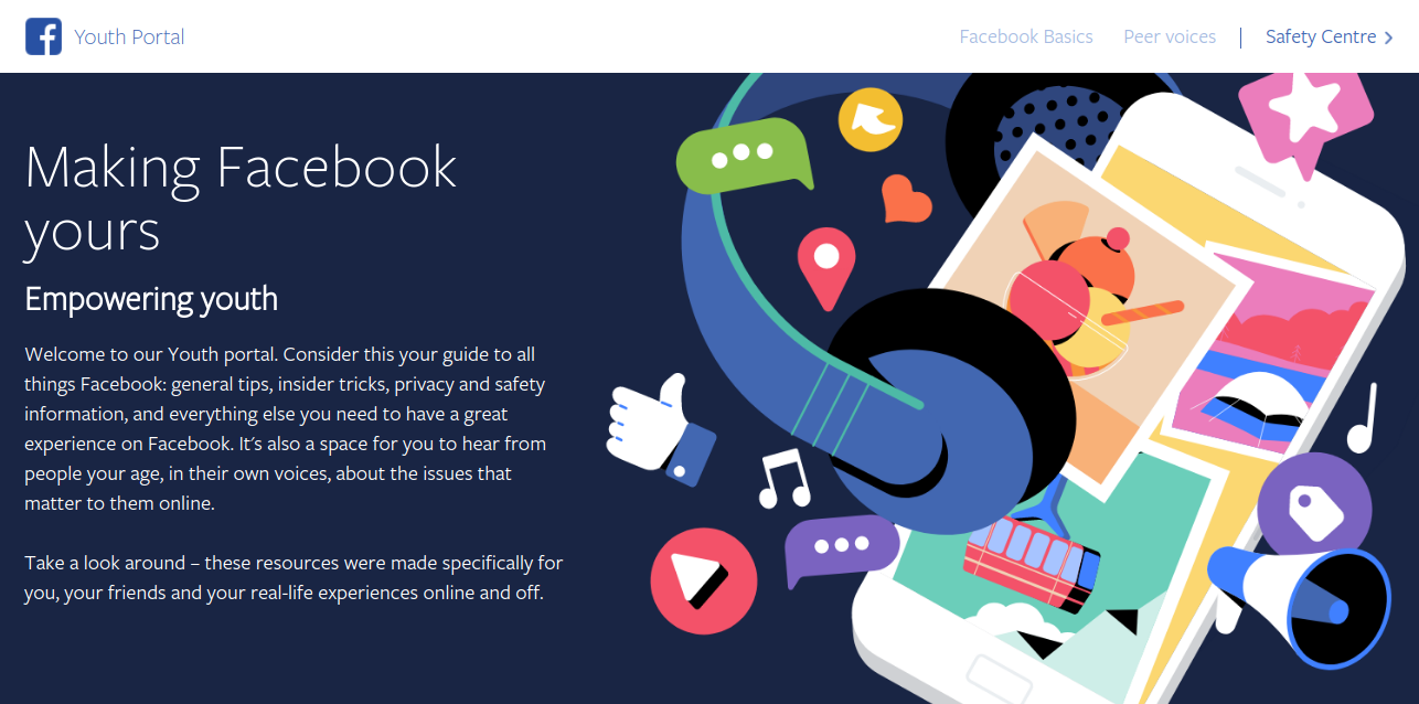 Empowering youth Welcome to our Youth portal. Consider this your guide to all things Facebook: general tips, insider tricks, privacy and safety information, and everything else you need to have a great experience on Facebook. It's also a space for you to hear from people your age, in their own voices, about the issues that matter to them online. Take a look around – these resources were made specifically for you, your friends and your real-life experiences online and off.