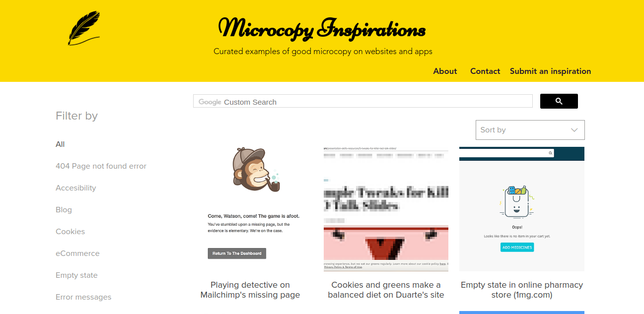 Inspiration for copywriters/UX writers. It's time designers and writers got together to create some kick-ass interfaces. The content is free to use for everyone. There is no pay-wall or ads to ensure the site doesn't look spammy.