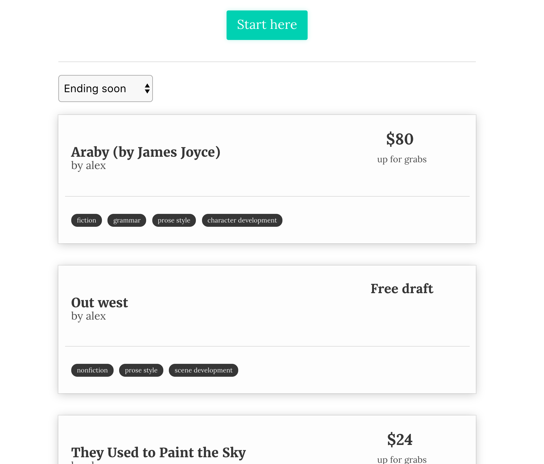 Penmob is an online writing workshop. While lots of platforms exist for finished work, there aren't many options for improving your writing before you hit the "publish" button. Finding editors is hard, requires lots of word-of-mouth referrals, and there is no guarantee that they'll be a good fit until after you've spent money. The process for freelance editors isn't much better. Editors are readers, first and foremost. They have varying strengths and preferences. It's just as painful for them when the writer who hired them isn't a good fit. On Penmob, editors do work according to their strengths rather than editing entire drafts start-to-finish. And writers get more diverse feedback to improve their craft. Drop your email on the landing page to be the first to know when Penmob launches!