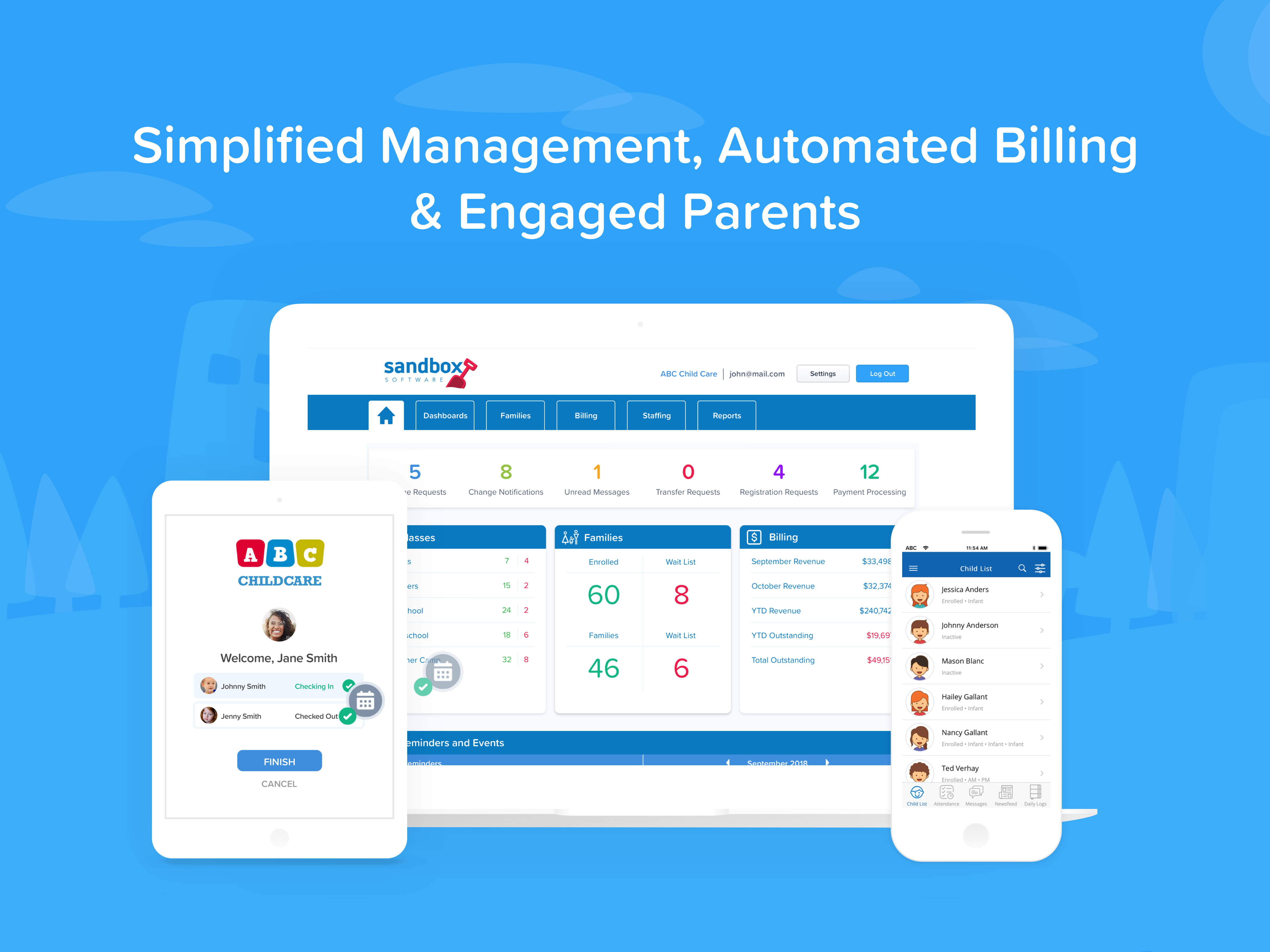 We recognize that the child care industry needs software that’s friendly and easy to use, while at the same time powerful enough to help child care owners and operators with managing the many responsibilities and tasks that arise each day. That’s why we’ve developed Sandbox – child care software that truly makes a difference for childcare owners and operators across North America.