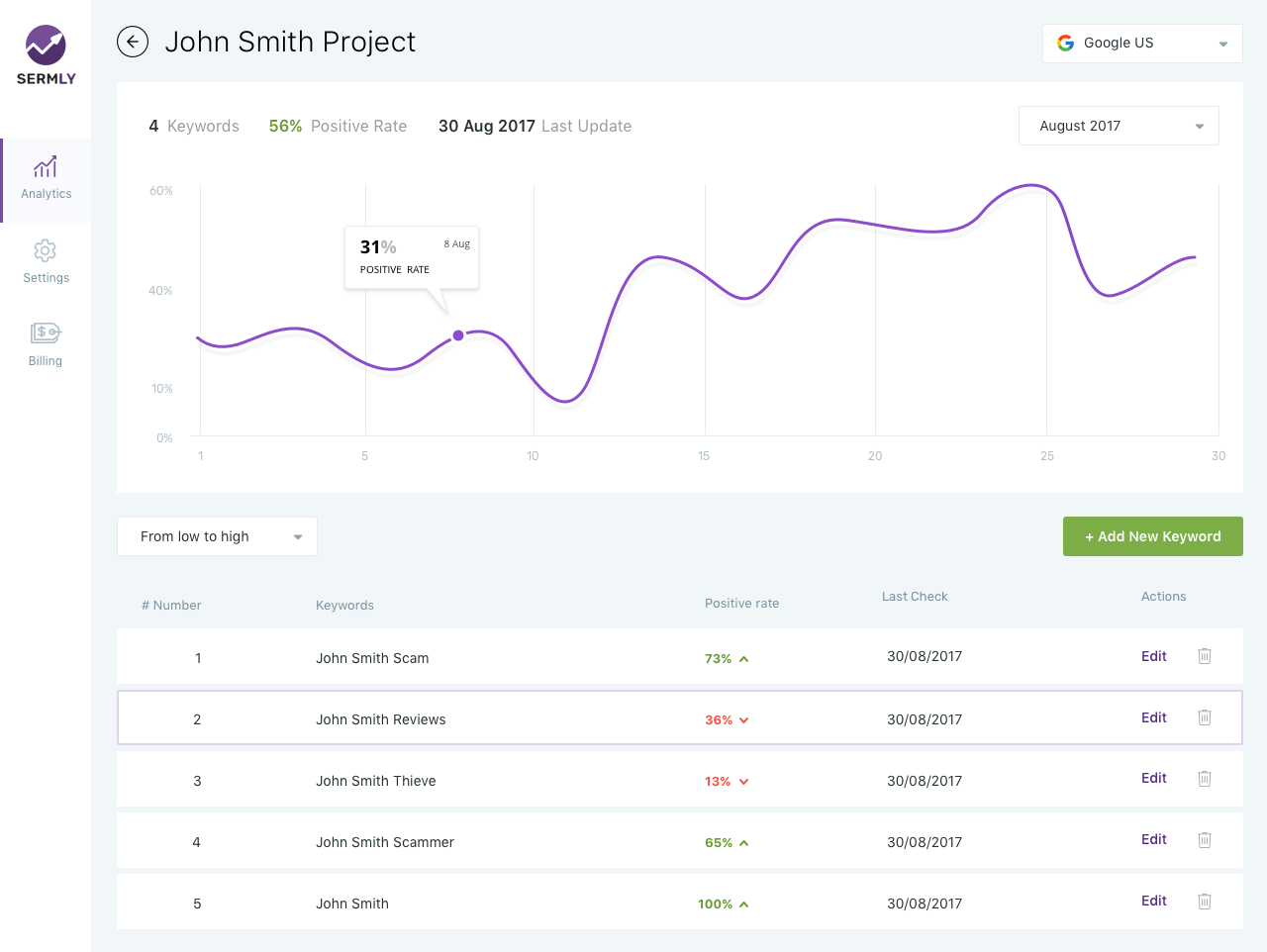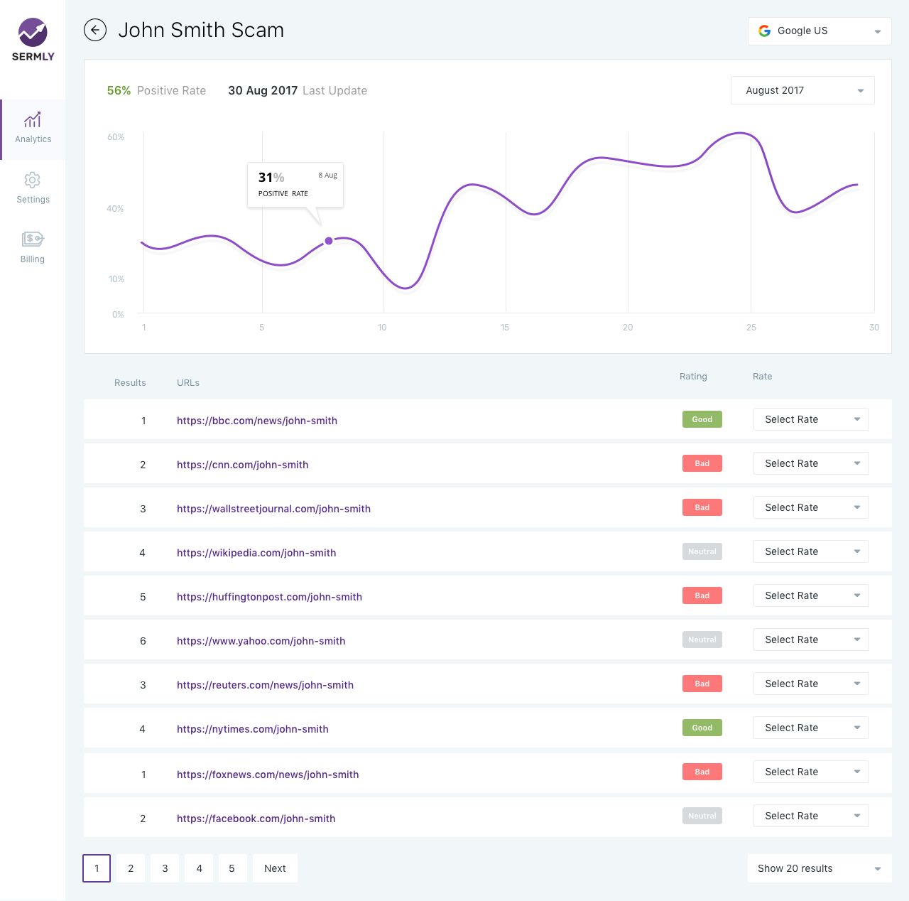 Search Engine Reputation Management Tools based on machine learning and big data. Designed to optimize search engine reputation management proccess. Analytics and Reports.
